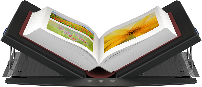 Уникальная книжная колыбель с магнитным соединением позволяет пользователям оцифровывать книги и документы формата A3+, укладывая их либо плашмя на сканирующий стол под углом 180°, либо в V-колыбель под углом 120° для бережного, защитного обращения с исходным материалом. Две стороны колыбели соединены магнитами, что позволяет легко перемещать сгиб книги в центре для достижения оптимальных результатов сканирования.